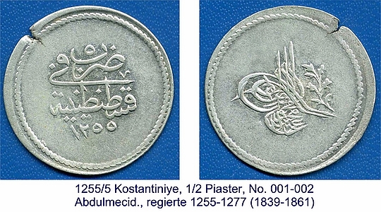 1255 Kostantiniye, 1 1/2 Piaster // Abdulmecid