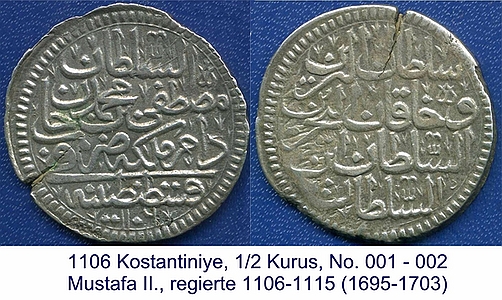 1106 Kostantiniye, 1/2 Kurus // Mustafa II.