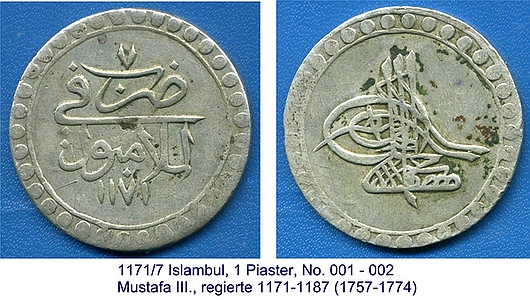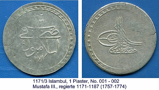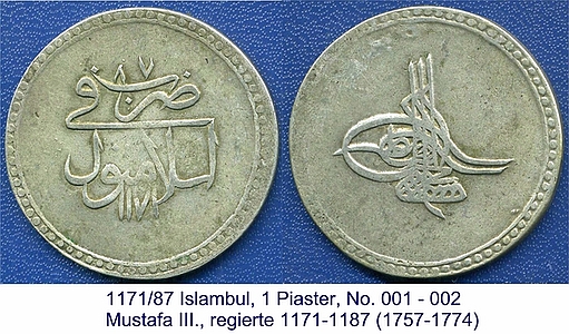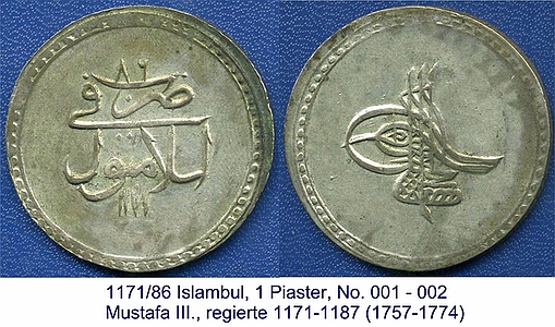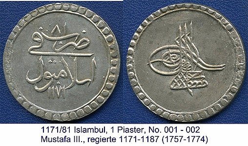 1171 Islambul, 1 Piaster // Mustafa III.